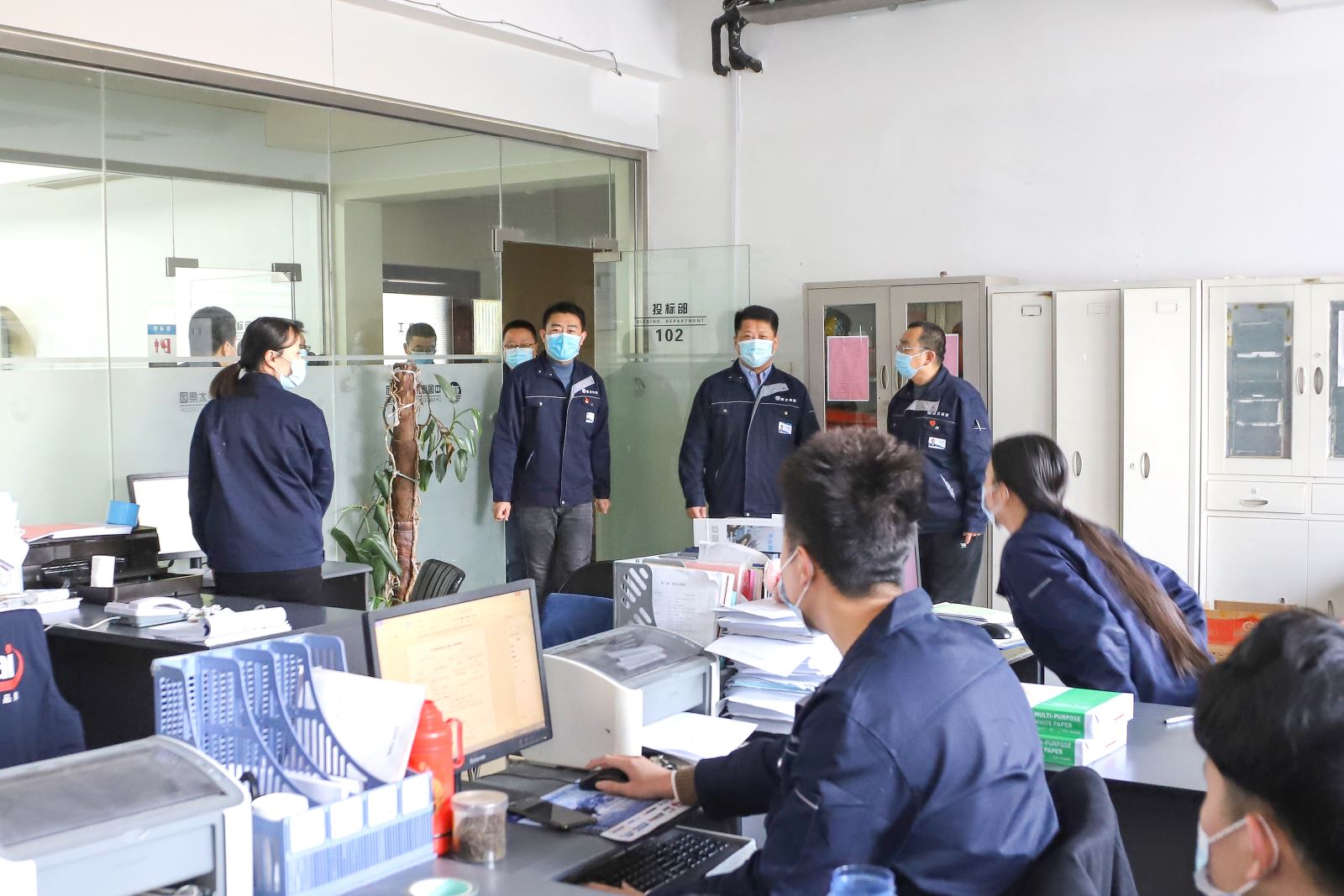 2021年2月20日農(nóng)歷正月初九,牛年春節(jié)過后的第一個工作日,德州亞太集團(tuán)總經(jīng)理?xiàng)钣?,黨總支書記、常務(wù)副總史振宇以及全體高層領(lǐng)導(dǎo)依次走訪了總部各科室、A區(qū)、B區(qū)生產(chǎn)車間及各事業(yè)部,為廣大職工送上新春祝福。每到一處,領(lǐng)導(dǎo)們熱情地與員工們握手問候,詢問過節(jié)情況,并對大家過去一年來的辛勤工作表示感謝。