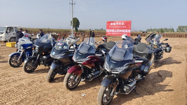 隨后,來(lái)自河南鐵福途重機(jī)俱樂(lè)部的重機(jī)騎士將所騎重機(jī)排成兩排,手持鐵棍山藥合影留念,共同為本次活動(dòng)助力。