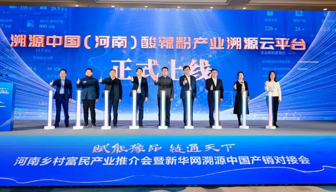 12月26日至27日,以“賦能豫品 鏈通天下”為主題的2025鄉(xiāng)村振興與產(chǎn)業(yè)發(fā)展大會暨第四屆鄉(xiāng)村振興論壇在鄭州隆重召開。作為農(nóng)業(yè)產(chǎn)業(yè)化國家重點龍頭企業(yè),豫道食品憑借扎實的產(chǎn)業(yè)根基與突出的富民成效,成功入駐新華網(wǎng)“溯源中國”可信品牌體系,成為河南鄉(xiāng)村富民標(biāo)桿,其以紅薯全產(chǎn)業(yè)鏈高質(zhì)量發(fā)展賦能鄉(xiāng)村振興的實踐成果,成為大會聚焦亮點。息縣縣長鄭春出席大會,共同啟動溯源中國(河南)酸辣粉產(chǎn)業(yè)溯源云平臺的上線。
