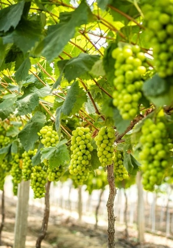 這個葡萄不一般! 在東西湖區(qū)的東山街,一種美味正在陽光和雨水中悄悄的醞釀,就是在葡萄界小有名氣的“東西湖葡萄”。 東西湖區(qū)屬崗邊湖積平原、北亞熱帶季風(fēng)氣候區(qū),光照充足、雨量充沛、水源豐富、四季分明,獨特的自然地理條件非常適宜種植葡萄。位于東西湖區(qū)的東山街群力大隊是“東西湖葡萄”的核心種植區(qū),也被稱作“葡萄小鎮(zhèn)”。 群力大隊的葡萄種植歷史可以追溯到上世紀90年代,當時種植的是釀酒用的葡萄,2000年后轉(zhuǎn)向食用葡萄的種植,現(xiàn)在逐步發(fā)展建成了面積2000畝、年產(chǎn)350萬公斤的高端葡萄種植基地。于2019年6月榮獲國家農(nóng)業(yè)農(nóng)村部地理標志農(nóng)產(chǎn)品登記保護產(chǎn)品。 “東西湖葡萄”地理標志所在的群力大隊現(xiàn)有采摘園40余家,每年葡萄采摘季節(jié)會有眾多的市民前來品嘗葡萄的香甜和欣賞東西湖葡萄小鎮(zhèn)的美麗景色。 “葡萄小鎮(zhèn)”不大,二分之一的土地都種上了葡萄。 其中最出名的是陽光玫瑰和夏黑兩個品種的葡萄,黃綠色的是陽光玫瑰、紫的是夏黑。 陽光玫瑰的果穗長圓錐形或圓柱形,果皮、果肉均呈黃綠色,肉質(zhì)脆硬,有玫瑰香味。果粒晶瑩剔透如美玉,外型非常美觀誘人,熟透的果子還會有濃郁的玫瑰香氣?!捌咸研℃?zhèn)”出產(chǎn)的陽光玫瑰,檢測甜度22~28度,而普通葡萄甜度在15度左右。 夏黑的果穗長圓錐形、穗形緊湊,果粒近圓形、著生牢固,果皮薄、紫黑色,果肉綠白色、無核,酸甜適口,風(fēng)味濃郁。果實可遠途運輸和長期貯藏,可貯藏到翌年初夏時節(jié),備受消費者青睞。 “東西湖葡萄”可以現(xiàn)摘現(xiàn)吃,果子套著紙袋長大,給葉子打藥時也噴不到果子,只有成熟后,果園主人才會揭起紙袋子等待食客采摘。 “東西湖葡萄”具有“果粒大、甜度高、口感好、無籽、耐儲運”等獨特品質(zhì)。