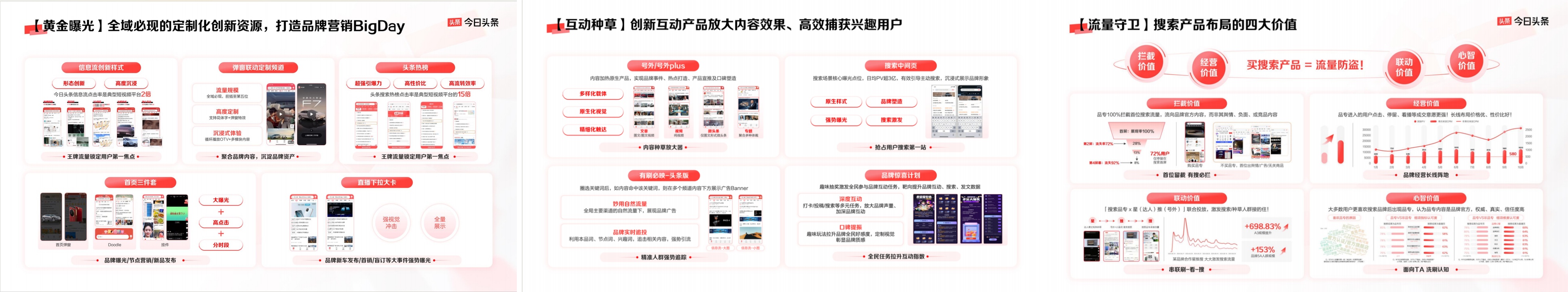 但和抖音的打通,也只是今日頭條產(chǎn)品矩陣完成全場景覆蓋的縮影之一,從可定制的資源點位,到互動種草的命中洞察,再到長鏈路搜索的攔截與轉(zhuǎn)化,營銷的盲點幾乎被消滅殆盡了。