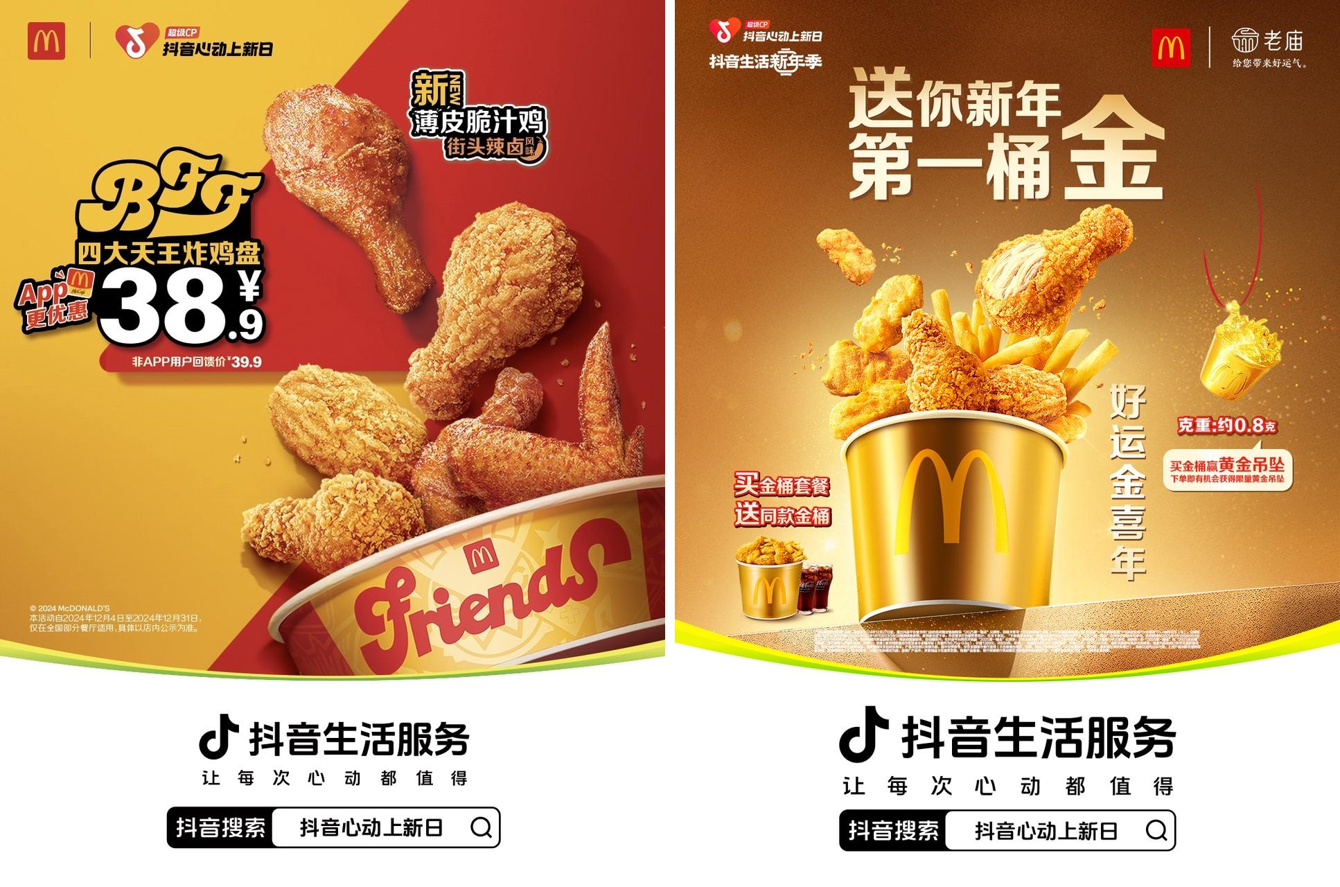 12月18日至12月25日,麥當(dāng)勞攜手熱門(mén)游戲IP“絕區(qū)零”展開(kāi)跨界聯(lián)動(dòng),并在「抖音心動(dòng)上新日」團(tuán)購(gòu)專區(qū)特別推出了59.9元、39.9元等限定IP聯(lián)名包裝充能餐,購(gòu)買(mǎi)套餐即可獲贈(zèng)游戲精美周邊,還有高度還原游戲場(chǎng)景的主題門(mén)店打卡、AR實(shí)景交互體驗(yàn)等創(chuàng)意玩法,邀請(qǐng)粉絲朋友們共赴破次元壁的快樂(lè)。12月6日至1月5日,麥當(dāng)勞與老廟黃金夢(mèng)幻聯(lián)動(dòng),攜手為用戶奉上“新年第一桶金”,結(jié)合“買(mǎi)桶送桶”超值福利、核銷后抽獎(jiǎng)得“周邊小金桶”和雙品牌直播連麥創(chuàng)意玩法,吸引了海量用戶關(guān)注,高效驅(qū)動(dòng)品牌交易轉(zhuǎn)化。