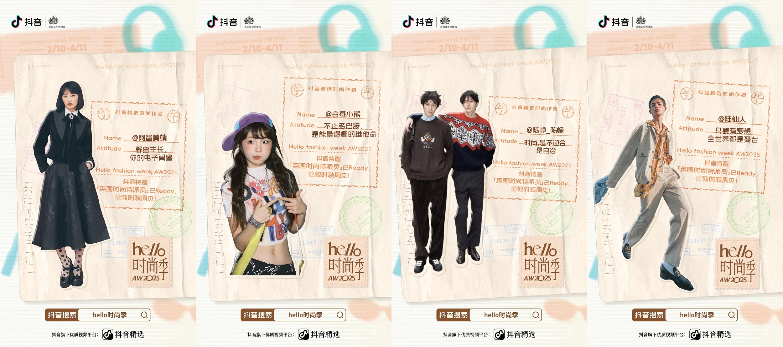 還有有愛分享的高能量國際模特@阿蛋黃靖,放大自身優(yōu)勢成為“多巴胺”穿搭天花板的@白晝小熊,愛整活更愛時尚的雙胞胎國際男模@陳崢_陳嶸,以及逆襲成為“野生超模”的@陸仙人,他們將深入時裝周秀場,欣賞時尚前沿的設(shè)計作品,感受潮流涌動的脈搏。