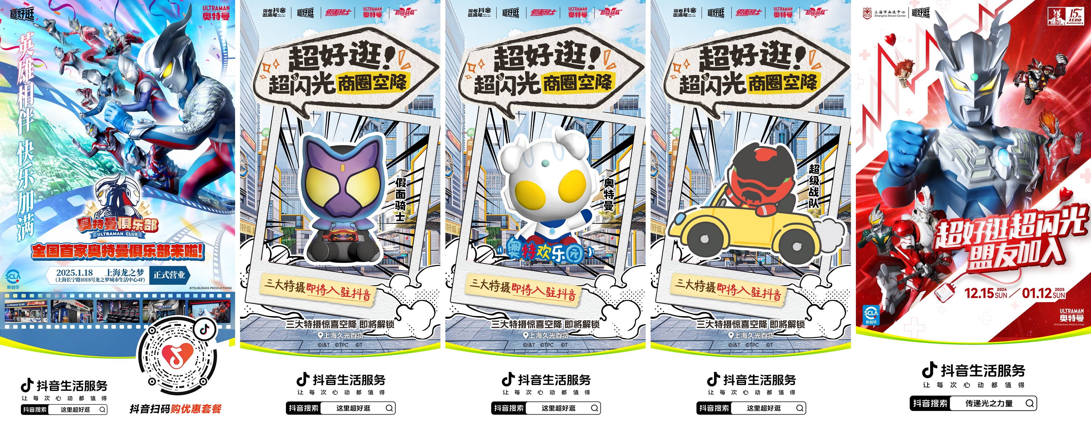 04.IP聯(lián)名煥新商圈,潮流打卡燃動商圈好生意 市井繁華,煙火人間,走進一條街,讀懂一座城。一條百逛不厭的街總是多元共生的,“政星”組團喊你逛街之外,IP聯(lián)名也讓商圈煥然一新。抖音“超好逛”深度鏈接奧特曼、假面騎士、超級戰(zhàn)隊三大IP,聯(lián)名定制貼紙、冰箱貼、購物袋等文創(chuàng)衍生品,引發(fā)粉絲站外自來水打卡。隨著三大特攝入駐抖音,熱點#假面騎士入駐抖音 、#超級戰(zhàn)隊入駐抖音 紛紛登上抖音全國熱榜Top持續(xù)吸引粉絲關(guān)注。抖音超好逛作為「超好逛超閃光盟友」攜手上海市血液中心助力無償獻血公益,為上海兒童醫(yī)院帶來冬日溫暖 。抖音生活服務(wù)還將與奧特曼IP繼續(xù)合作,1月18日奧特曼俱樂部在上海首店的開業(yè),令人倍感期待。