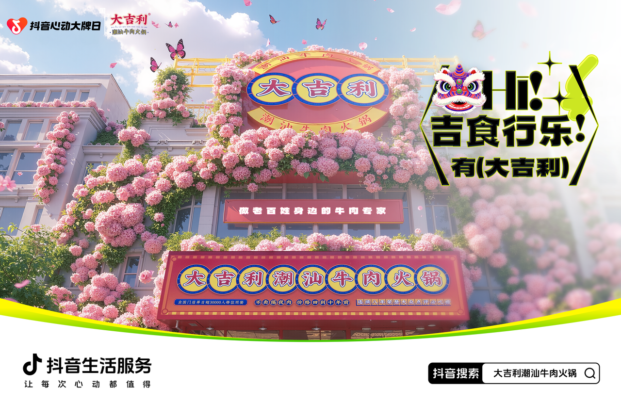 「每周心動(dòng)指南」作為一檔聚焦系列商家特色的內(nèi)容欄目,每期將精心遴選熱門商家,深度剖析其獨(dú)到的用戶經(jīng)營(yíng)策略。該欄目緊密貼合大眾日常生活的真實(shí)場(chǎng)景,匯聚了抖音生活服務(wù)旗下的兩大熱門活動(dòng)——「抖音心動(dòng)大牌日」與「抖音心動(dòng)上新日」中的參與商家。本期欄目悉心甄選了大吉利這一熱門品牌,集合了眾多舌尖特惠和驚喜玩法,與廣大粉絲和用戶朋友們并肩啟程,共赴春日驚喜盛宴!