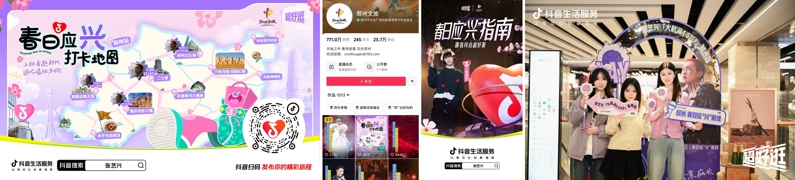當(dāng)明星演唱會(huì)與城市文旅碰撞,鄭州探索出了一條將粉絲熱情轉(zhuǎn)化為城市熱度的新路徑。抖音生活服務(wù)攜手鄭州文旅與張藝興工作室合作推出“春日應(yīng)興打卡地圖”,把演出場館外的城市空間變成粉絲的互動(dòng)主場。