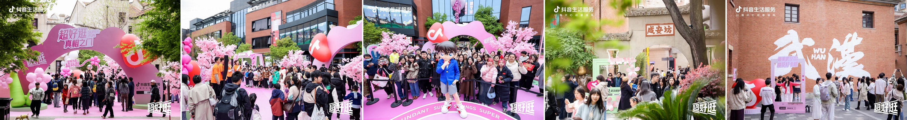 如果說西安用一張打卡地圖串聯(lián)起盛唐文化地標(biāo),武漢則更進(jìn)一步,直接把地鐵2號(hào)線改造成流動(dòng)的打卡線。抖音生活服務(wù)和名偵探柯南IP聯(lián)名,與櫻花季深度融合,打造