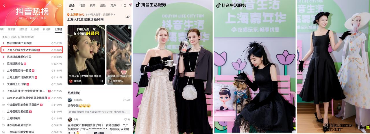 在上海市楊浦區(qū)商務(wù)委員會和上海市楊浦區(qū)文化和旅游局的共同指導(dǎo)下,結(jié)合第四屆“上海寵物時裝周”及國際大展《親密的奧黛麗·赫本》,抖音生活服務(wù)在上海國際時尚中心設(shè)置互動打卡點,邀請達(dá)人身著赫本風(fēng)服飾攜寵走秀,助力展覽門票和赫本風(fēng)妝造等周邊服務(wù)售賣。此外,攜手海爾搭建戶外裝置,為現(xiàn)場有需要的毛孩子們提供免費(fèi)機(jī)洗服務(wù)。定制款貓窩也一同亮相會場,瞬間成為互動打卡的焦點,受到現(xiàn)場愛寵市民的熱烈追捧。