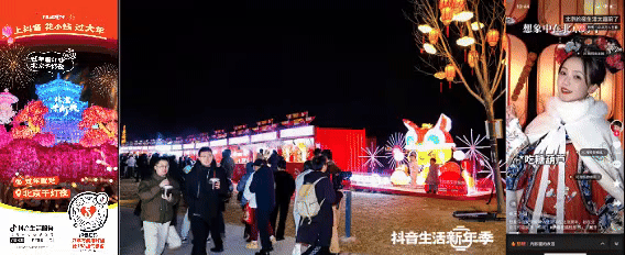 “花燈初上夜未央,千燈璀璨亮京城”, 在擁有600畝超大空間的北京千燈夜,游客們可以盡情享受千盞彩燈的視覺(jué)盛宴。期間,超頭達(dá)人 @王乃迎 發(fā)布深度游玩視頻,帶領(lǐng)用戶感受多元化、沉浸式的夜游新體驗(yàn),以超高的內(nèi)容熱度帶動(dòng)#北京的夜生活太超前了熱點(diǎn)登上同城榜TOP1,種草榜TOP3。同時(shí),抖音生活新年季的各式線下裝置出街,將排面拉滿,助力北京千燈夜銷售額環(huán)比增長(zhǎng)超6倍。