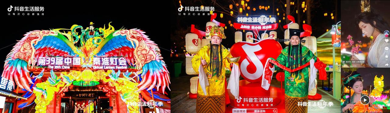 在南京秦淮燈會(huì)上,新年季互動(dòng)裝置入駐帶來(lái)了多重互動(dòng)玩法,帶領(lǐng)游客沉浸式感受蛇年水上彩燈的魅力。同時(shí),超頭達(dá)人@宛央、@楚淇 發(fā)布「秦淮燈會(huì)X周邊吃喝玩樂(lè)商家」體驗(yàn)視頻,帶動(dòng)#南京的年味遙遙領(lǐng)先登熱點(diǎn)同城榜TOP1,讓內(nèi)容流量化身本地商家生意銷量,推動(dòng)區(qū)域門店的生意增長(zhǎng)。