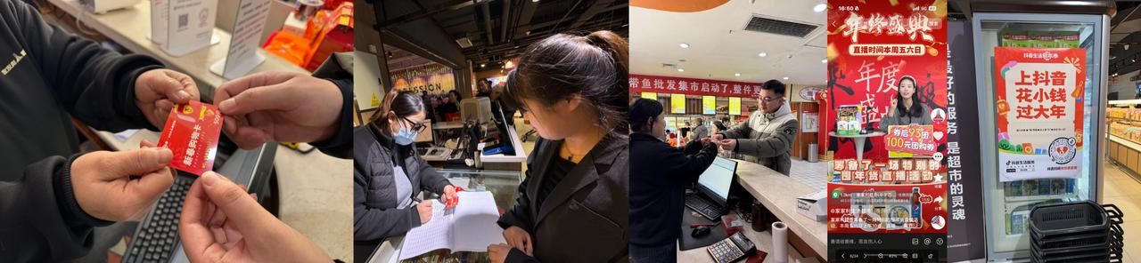 家家利超市與活動(dòng)合作共制重磅聯(lián)名儲(chǔ)值卡,為新年好運(yùn)主理人們送上春節(jié)消費(fèi)驚喜福利。超市推動(dòng)店內(nèi)員工引導(dǎo)顧客掃碼交易,春節(jié)期間幫助商戶累計(jì)提升掃碼粉絲數(shù)量1.4萬(wàn),單月掃碼支付金額達(dá)1054萬(wàn)元,限量2萬(wàn)張(面額500元)全部售罄,核銷率98%,節(jié)中售賣超千萬(wàn)。春節(jié)期間掃碼日峰值126萬(wàn),掃碼UV曝光3.3萬(wàn)。同時(shí)以高頻次職人直播,承接節(jié)前消費(fèi)客流高峰,前置通過(guò)視頻鋪排為開(kāi)播進(jìn)行預(yù)熱,利用線下線上場(chǎng)景做好用戶心智和GMV的雙向轉(zhuǎn)化。最終取得1月24日最高單場(chǎng)觀看峰值超過(guò)82萬(wàn),單日支付金額突破200萬(wàn)元的好成績(jī),實(shí)現(xiàn)銷售業(yè)績(jī)大幅提升。