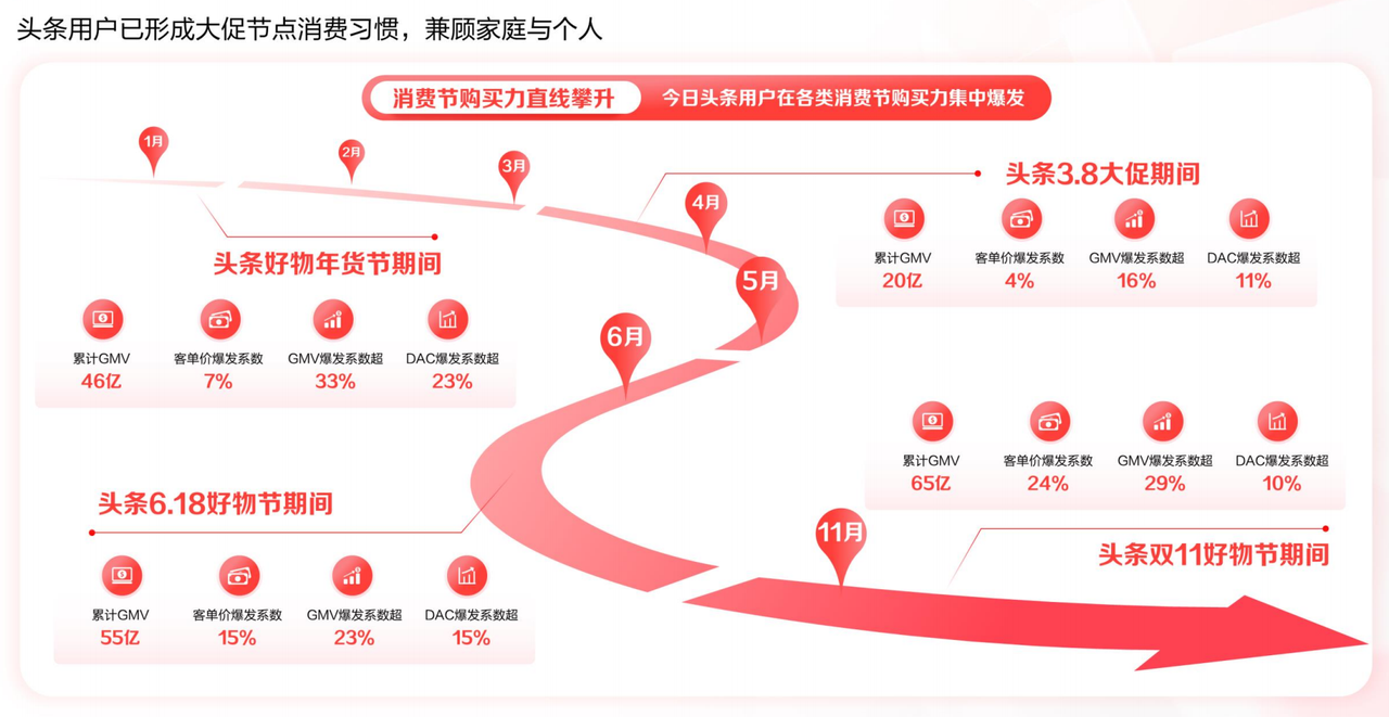 圖源:《2024今日頭條平臺(tái)營(yíng)銷通案》 另一方面,用戶消費(fèi)更理性,他們的消費(fèi)能力主要會(huì)在電商大促節(jié)點(diǎn)集中釋放。對(duì)品牌來說,參與大促節(jié)點(diǎn)和IP項(xiàng)目的重要性就更為凸顯。
