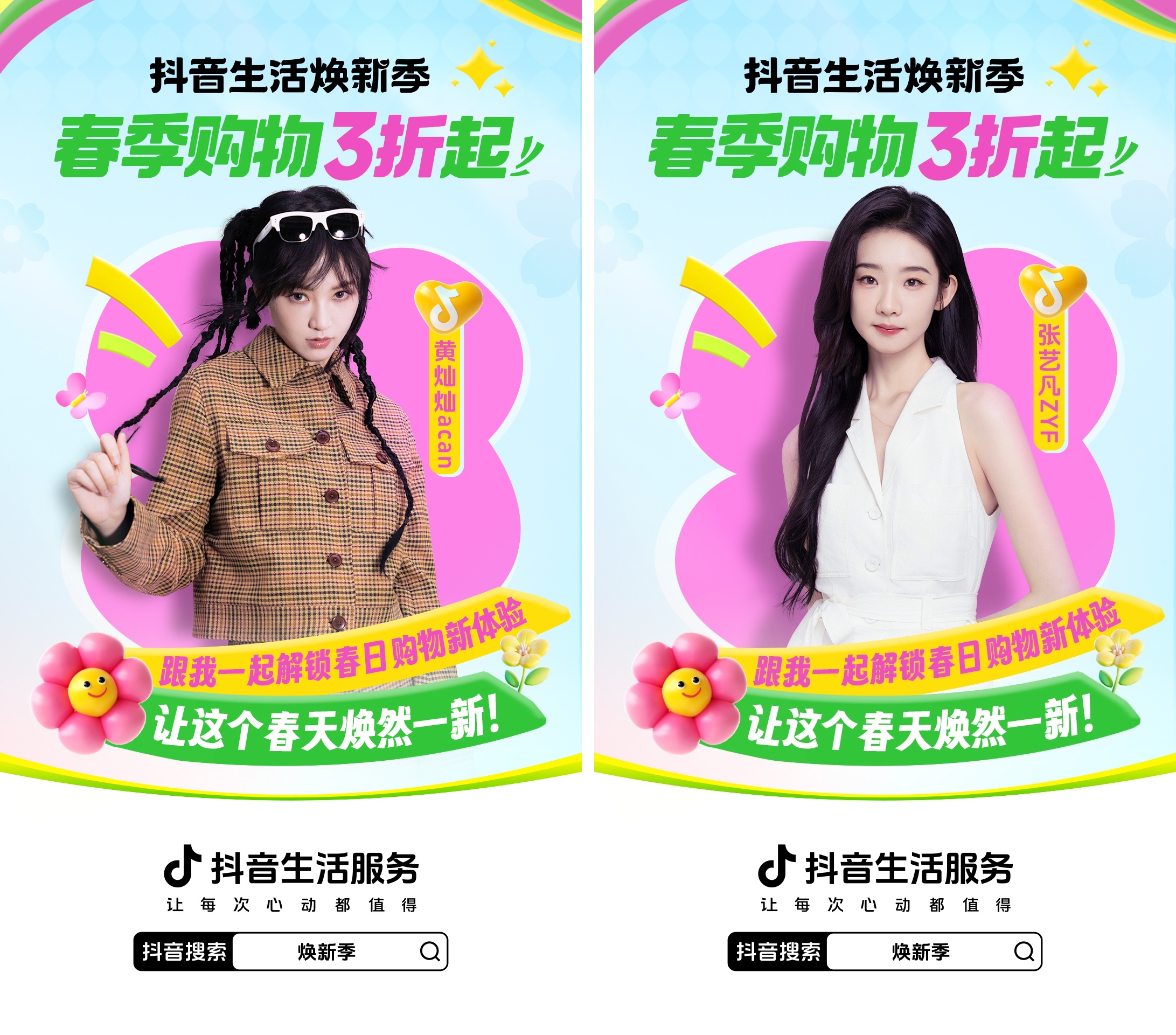 本周更有黃燦燦、張藝凡空降抖音生活煥新季,開啟「人煥新」專場優(yōu)惠活動,帶你解鎖春日變美新體驗!