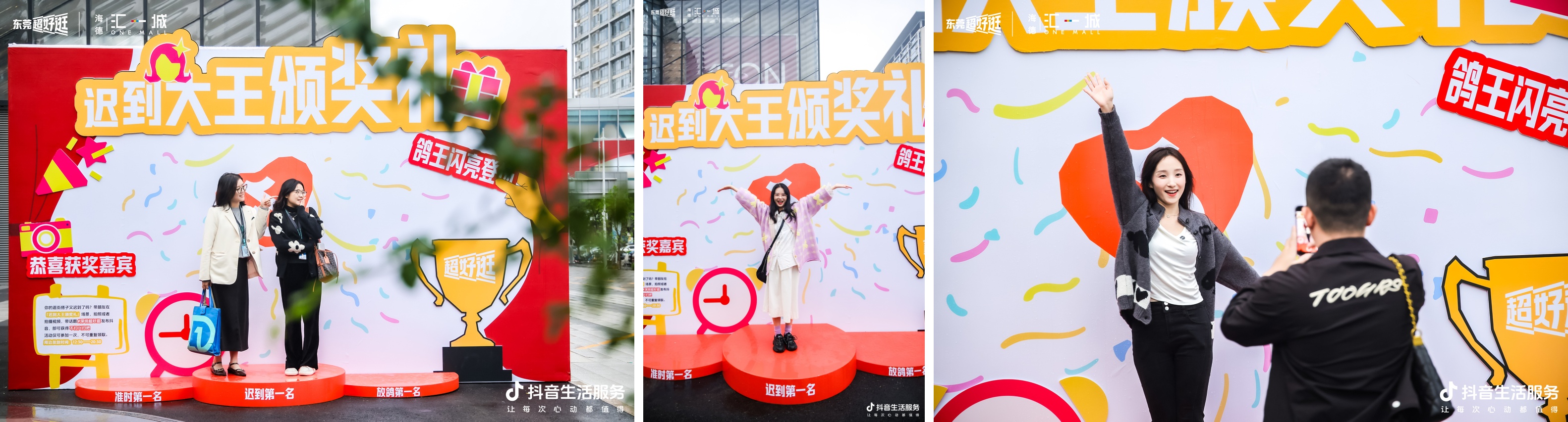 02 在深圳,不好好逛街的人會(huì)被“投訴” 在這座年輕人扎堆的活力都市,明天和爽約永遠(yuǎn)不知道哪個(gè)先來。 常常有人在抖音吐槽“明明約好去逛街,姐妹一心去搞錢”,也會(huì)有人在評(píng)論區(qū)哭訴“冤枉,人在職場(chǎng),身不由己,是這個(gè)班先動(dòng)手的”。問就是“都可以”,結(jié)果就是“遲到”、“放鴿子”、“逛街玩手機(jī)”......有多少人喜歡逛街,就有多少人被那些不好好逛街的人“傷害”過。 這一次,「深圳超好逛」讓你的“逛街情緒”,有口可出。對(duì)不好好逛街的人,在各大商圈特別打造“遲到大王頒獎(jiǎng)典禮”、“掃興搭子變形記”、“放下手機(jī)休息站”、“ “薅羊毛”情報(bào)站”提醒打卡點(diǎn),主打一個(gè)“對(duì)癥下藥”。 一些“鴿王”獲獎(jiǎng)嘉賓已經(jīng)不好意思地登上“頒獎(jiǎng)典禮”了,對(duì)著鏡頭比個(gè)耶,就算是被朋友拿下不好好逛街的“把柄”了,下次逛街爭(zhēng)取不做“遲到第一名”,“準(zhǔn)時(shí)第一名”的頒獎(jiǎng)臺(tái)成為不少人的flag打卡點(diǎn),“逛街美德”今日狠狠拿捏了;或者提前來到“薅羊毛”情報(bào)站,這一次不用提前做攻略,也能知道在哪就能輕松買到超值好物了。
