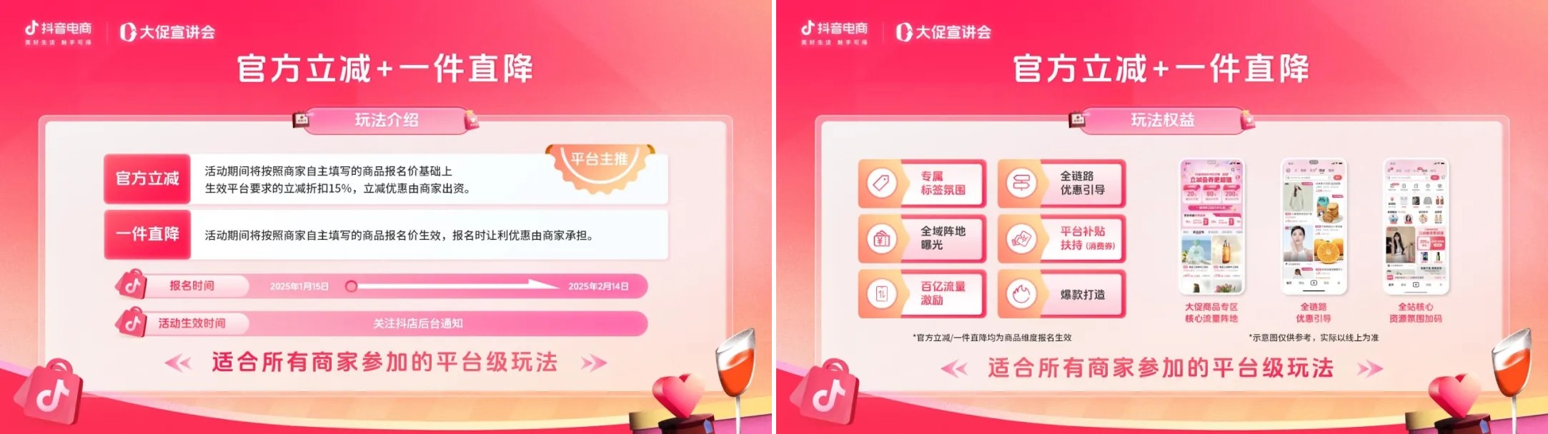 目前,抖音商城浪漫情人節(jié)大促已正式開啟,點擊「閱讀原文」即可查看完整版報名指南,為消費(fèi)者帶來更浪漫購物體驗!