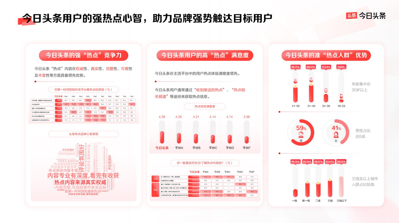 在當(dāng)下的市場(chǎng)環(huán)境中,大眾的消費(fèi)需求/消費(fèi)決策大多與社會(huì)熱點(diǎn)同構(gòu)。大眾消費(fèi)熱點(diǎn)內(nèi)容、也從熱點(diǎn)內(nèi)容尋得消費(fèi)依據(jù)。在一次次見(jiàn)證“巴黎奧運(yùn)同款”“《再見(jiàn)愛(ài)人》同款”掀起斷貨熱潮之后,可以肯定的是,品牌營(yíng)銷的新機(jī)會(huì)就藏在類似的熱點(diǎn)事件里。 而內(nèi)容平臺(tái)本身即是社會(huì)熱點(diǎn)的集合地,是大眾消費(fèi)熱點(diǎn)內(nèi)容的主要場(chǎng)合。根據(jù)今日頭條作者與內(nèi)容負(fù)責(zé)人李黎的數(shù)據(jù)分享:“在頭條的月活人群中,有1.2億對(duì)熱點(diǎn)保持極高關(guān)注,他們平均每天2次打開(kāi)頭條熱榜,消費(fèi)熱點(diǎn)內(nèi)容。……如今的頭條上,平均每個(gè)月會(huì)產(chǎn)生30+個(gè)超級(jí)熱點(diǎn)事件。”從中源源不斷涌現(xiàn)的最新消費(fèi)需求,成為品牌營(yíng)銷突圍點(diǎn)。
