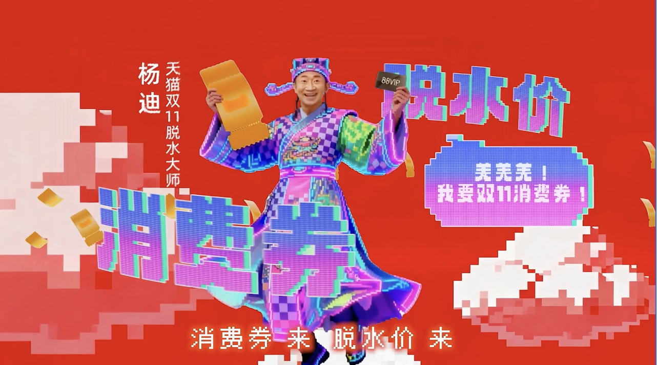 楊迪以“財(cái)神爺”形象發(fā)放家電消費(fèi)券,向佐通過(guò)變裝演繹服飾類目“降溫干貨”,丁真結(jié)合出游場(chǎng)景帶出旅行優(yōu)惠。每位“脫水大師”的演繹均緊密貼合品類特點(diǎn),兼顧趣味性與記憶點(diǎn)。