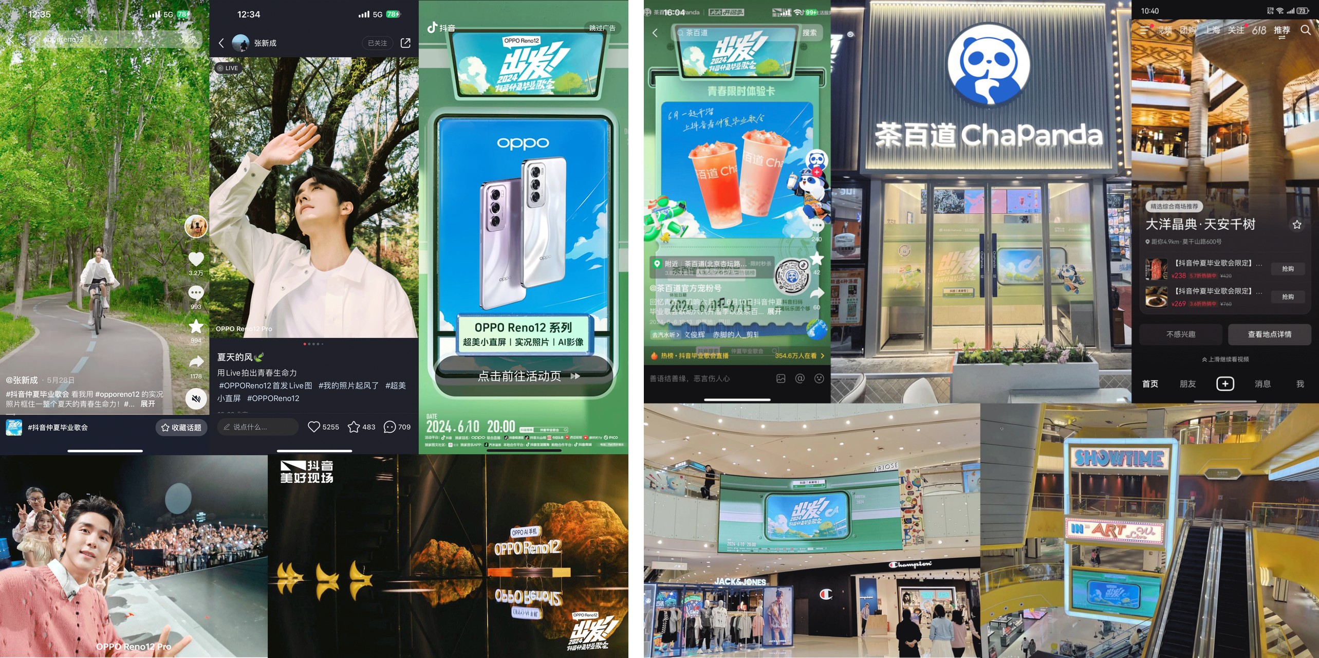 OPPO Reno12通過畢業(yè)歌會(huì)冠名合作,以青年藝人校園感大片+歌會(huì)內(nèi)容,打造畢業(yè)季全周期陪伴式新機(jī)種草內(nèi)容場,在盛夏與即將走入新階段的畢業(yè)生人群深度共情。同時(shí),畢業(yè)歌會(huì)聯(lián)合抖音生活服務(wù)與茶百道全國門店、上海大洋千樹等推出畢業(yè)歌會(huì)聯(lián)名套餐,為廣大畢業(yè)生群體帶來專屬青春體驗(yàn);聯(lián)動(dòng)上海13+核心商圈共同打call畢業(yè)歌會(huì),共慶成長與出發(fā)的畢業(yè)禮贊。