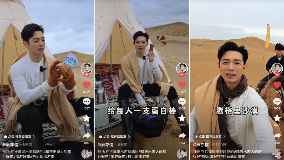 @辰亦儒 則是在沙漠解鎖精致出游新方式,從咖啡、牛奶,到能量棒、益生菌,全都隨身攜帶,跟著這樣的出游搭子走到哪兒都讓人安全感滿滿。