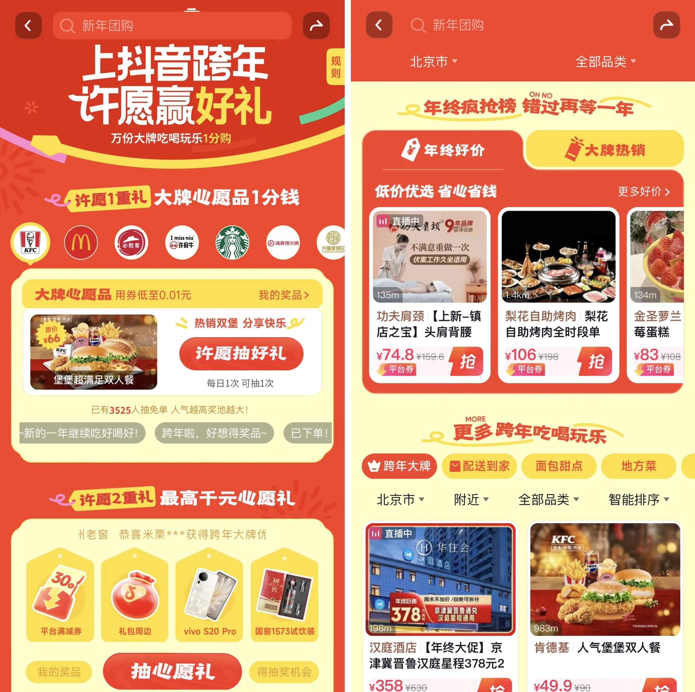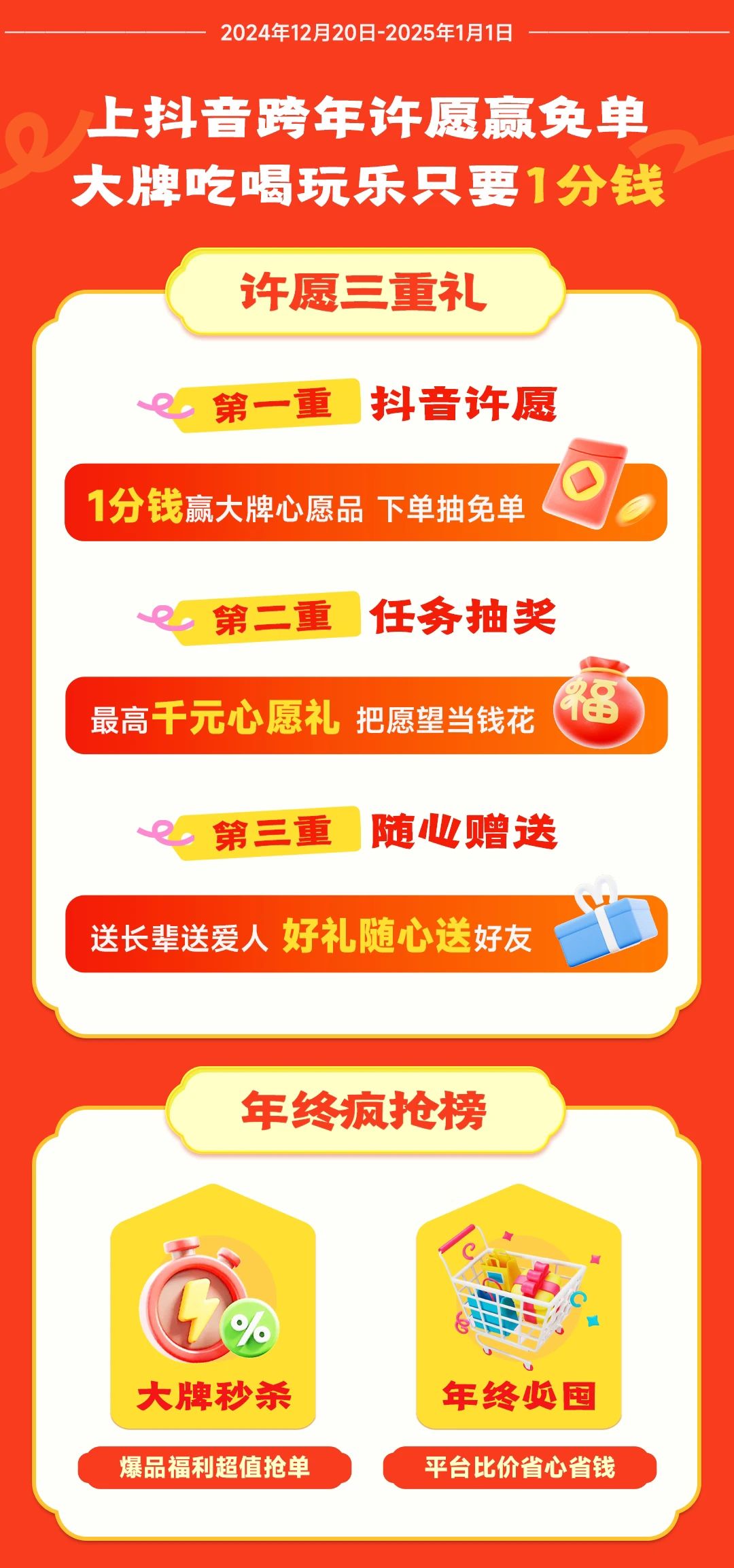 1. 許愿1重禮:上抖音跨年許愿贏免單,大牌吃喝玩樂(lè)只要1分錢(qián)。