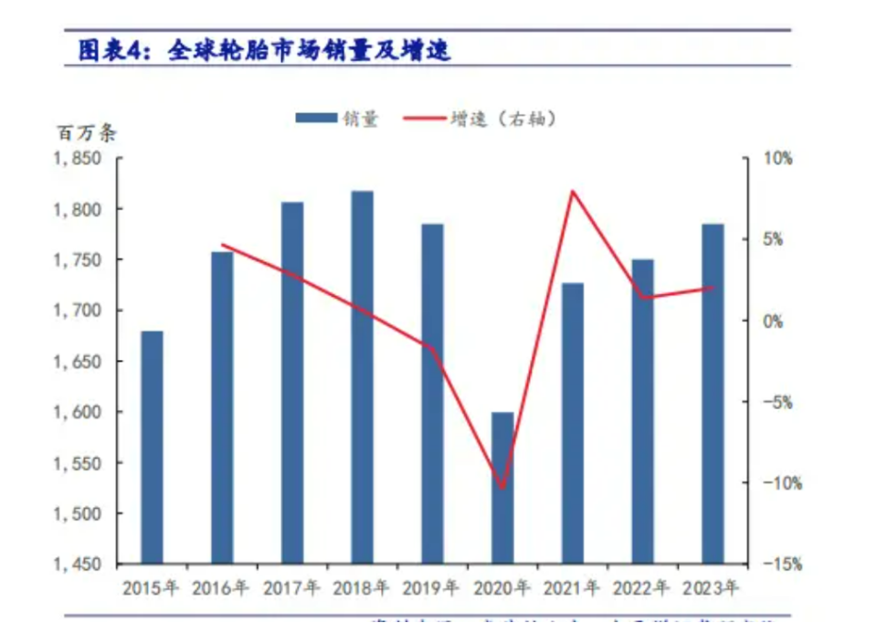 在當(dāng)今時(shí)代,汽車行業(yè)的蓬勃發(fā)展如同一股洶涌的浪潮,而輪胎作為汽車與地面接觸的關(guān)鍵部分,其角色至關(guān)重要。隨著汽車保有量的持續(xù)攀升,輪胎市場也在經(jīng)歷深刻變革。據(jù)相關(guān)數(shù)據(jù)顯示,過去五年內(nèi),全球汽車銷量以年均約 3.5% 的速度增長,其中新能源汽車銷量更是呈現(xiàn)爆發(fā)式增長,年均增長率超過 40%。輪胎市場的銷量也呈現(xiàn)上漲趨勢,參考太平洋證券研究院的數(shù)據(jù)顯示,2023年全球輪胎銷量17.85億條,同比增長2%。2008-2023年全球輪胎消費(fèi)量的年均增速為2.3%。