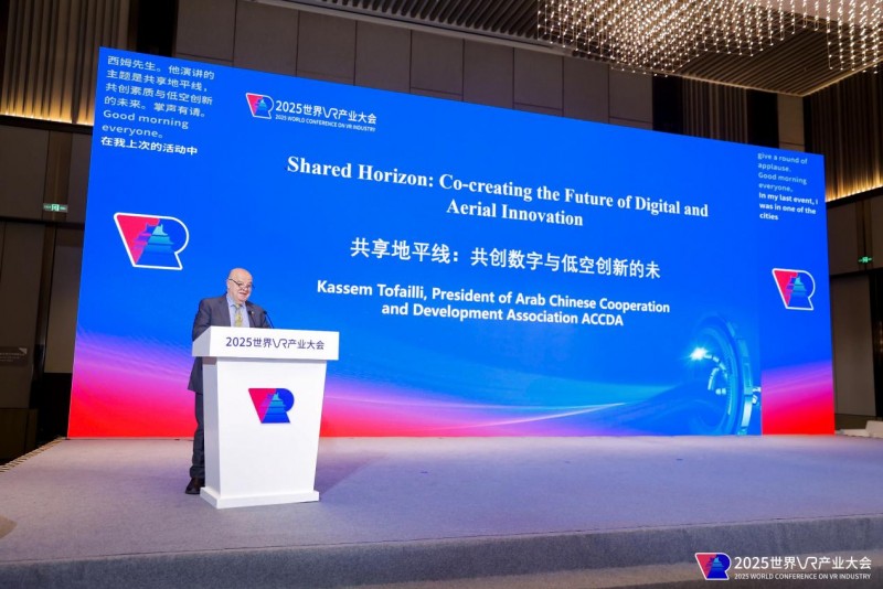 阿拉伯中國合作與發(fā)展協(xié)會主席卡西姆·特法利在《共享地平線:共創(chuàng)數(shù)字與低空創(chuàng)新的未來》演講中,呼吁共建“數(shù)字空中絲路”,推動中阿雙方在VR與低空經(jīng)濟領(lǐng)域的深度合作,共同開拓全球市場。