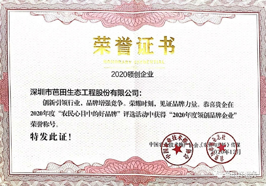三十一年的堅(jiān)持,三十一年的創(chuàng)新。芭田專注植物營(yíng)養(yǎng)、關(guān)注生態(tài)與土壤健康,實(shí)現(xiàn)肥料技術(shù)三級(jí)跳,彰顯了民族肥料品牌的力量。 農(nóng)民心目中的好品牌 實(shí)至名歸! 2020年,新冠肺炎的沖擊,洪澇、干旱、臺(tái)風(fēng)等自然災(zāi)害的侵襲,讓整個(gè)農(nóng)資行業(yè)在低迷中前行。面對(duì)困難,芭田以創(chuàng)新驅(qū)動(dòng)發(fā)展, 依托貴州優(yōu)質(zhì)磷礦資源、注入“熱法選礦”、“冷凍硝酸分解法”、“高塔聚合磷酸銨”等核心的專利技術(shù),陸續(xù)推出硝硫基三磷復(fù)肥、橙皮精油系列等多個(gè)功能性產(chǎn)品。這些產(chǎn)品以高貴的硝酸磷肥作為生產(chǎn)原料,注入芭田多項(xiàng)專利技術(shù),能有效提升肥料利用率20%以上,降低肥料投入成本20%。在蔬果等經(jīng)濟(jì)作物以及小麥、水稻等大田作物上施用后,農(nóng)作物提質(zhì)增產(chǎn)效果明顯,農(nóng)產(chǎn)品價(jià)值提升20%,深受廣大種植青睞。 榮獲2020年度“農(nóng)民心目中的好品牌”之“2020年度領(lǐng)創(chuàng)品牌企業(yè)”榮譽(yù)稱號(hào),再次證明了芭田品牌在農(nóng)民心目中的重要地位,也充分說(shuō)明了芭田在引領(lǐng)行業(yè)發(fā)展中起到的重要作用。 未來(lái),芭田將持續(xù)進(jìn)行研發(fā)創(chuàng)新,將更多的先進(jìn)技術(shù)應(yīng)用到肥料產(chǎn)品當(dāng)中,為農(nóng)業(yè)高質(zhì)量發(fā)展、為農(nóng)民增產(chǎn)增收貢獻(xiàn)力量。