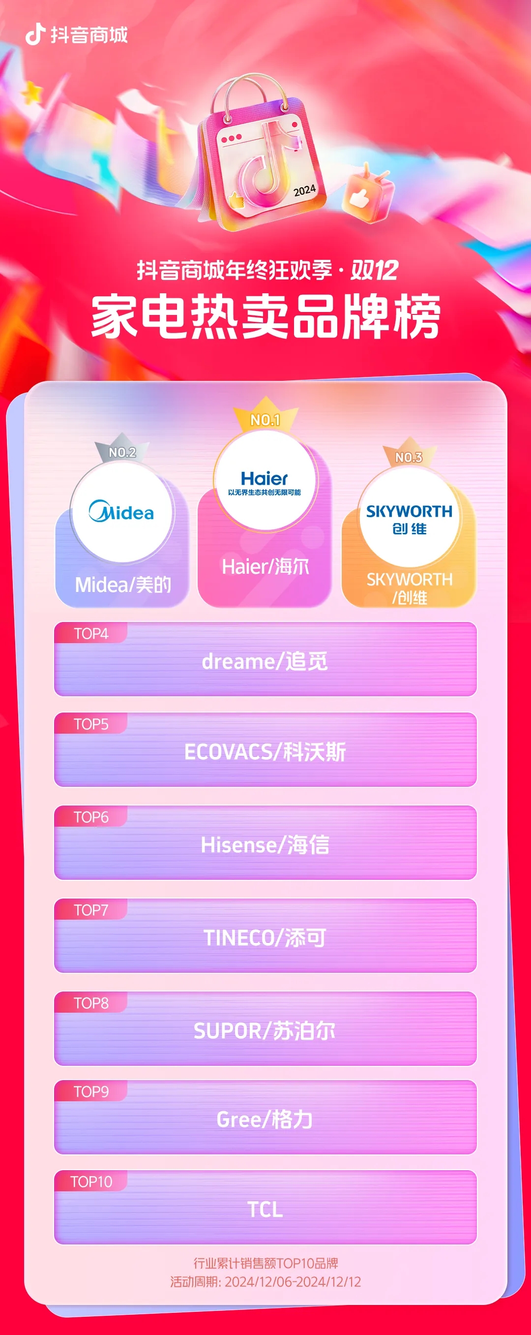 12月12日,「抖音商城年終狂歡季」雙12大促圓滿收官。