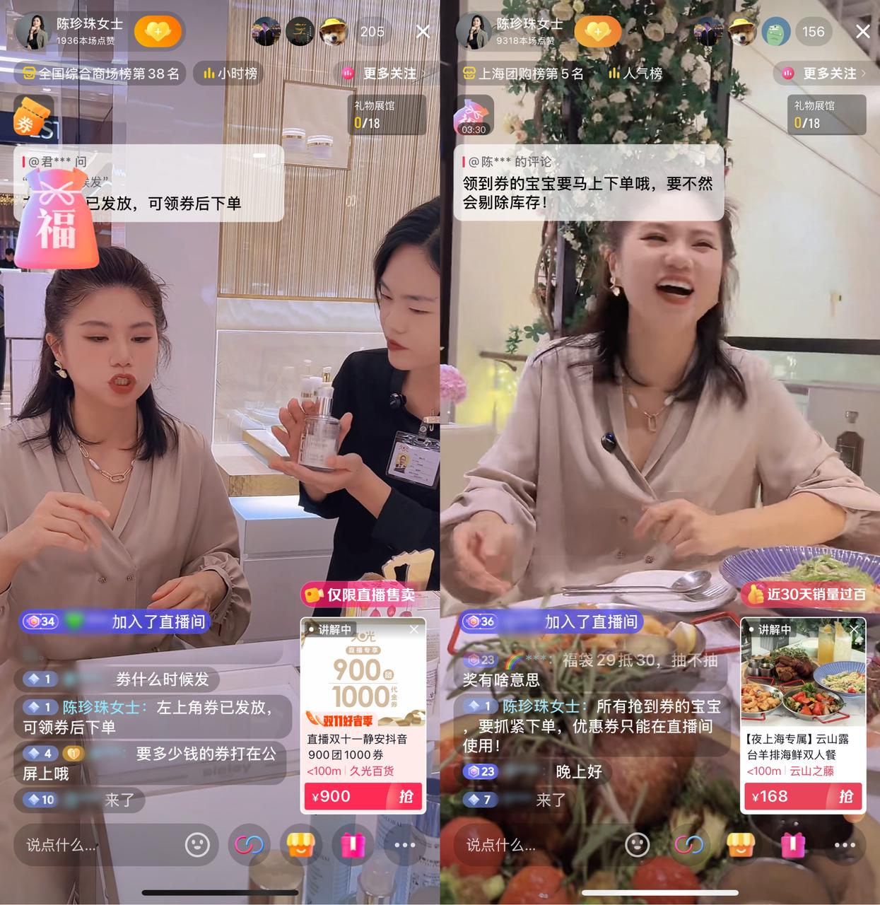 而在「場」上,陳珍珠更是下足了功夫。她把視頻創(chuàng)作的內(nèi)容力搬到直播間,「這次直播我們以一個實景直播為主,并且我們專門設計了走播的形式,通過內(nèi)容和好的貨盤機制吸引用戶,并不斷提高轉(zhuǎn)化?!顾d奮地還原了當時的直播情況:「當時久光百貨有個外場的美妝市集,有一個首發(fā)券活動力度特別大,所以我們就跑到外場,在直播間給大家一個所見即所得的感覺。最后直播間的效果就非常好?!顾f,即使是高客單價,還是會有很多用戶下單購買,「這樣的本地生活服務直播真是太刺激好玩了」。