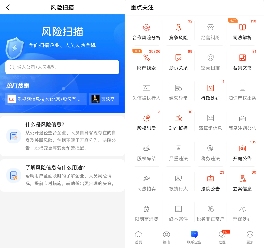 深入洞察和有效規(guī)避潛在風(fēng)險,是確保合作穩(wěn)健進(jìn)行的核心要素。愛企查提供企業(yè)風(fēng)險深度挖掘功能,幫助用戶及時發(fā)現(xiàn)和規(guī)避潛在風(fēng)險。職場人士可以通過愛企查的風(fēng)險查詢功能,了解目標(biāo)企業(yè)的司法風(fēng)險、經(jīng)營風(fēng)險等,避免在合作中遇到不必要的麻煩。此外,愛企查不止于呈現(xiàn)企業(yè)基礎(chǔ)維度信息,更能深入挖掘相關(guān)企業(yè)與關(guān)鍵人物之間的商業(yè)關(guān)系網(wǎng)絡(luò),助力用戶發(fā)現(xiàn)潛在的商業(yè)合作機(jī)會。