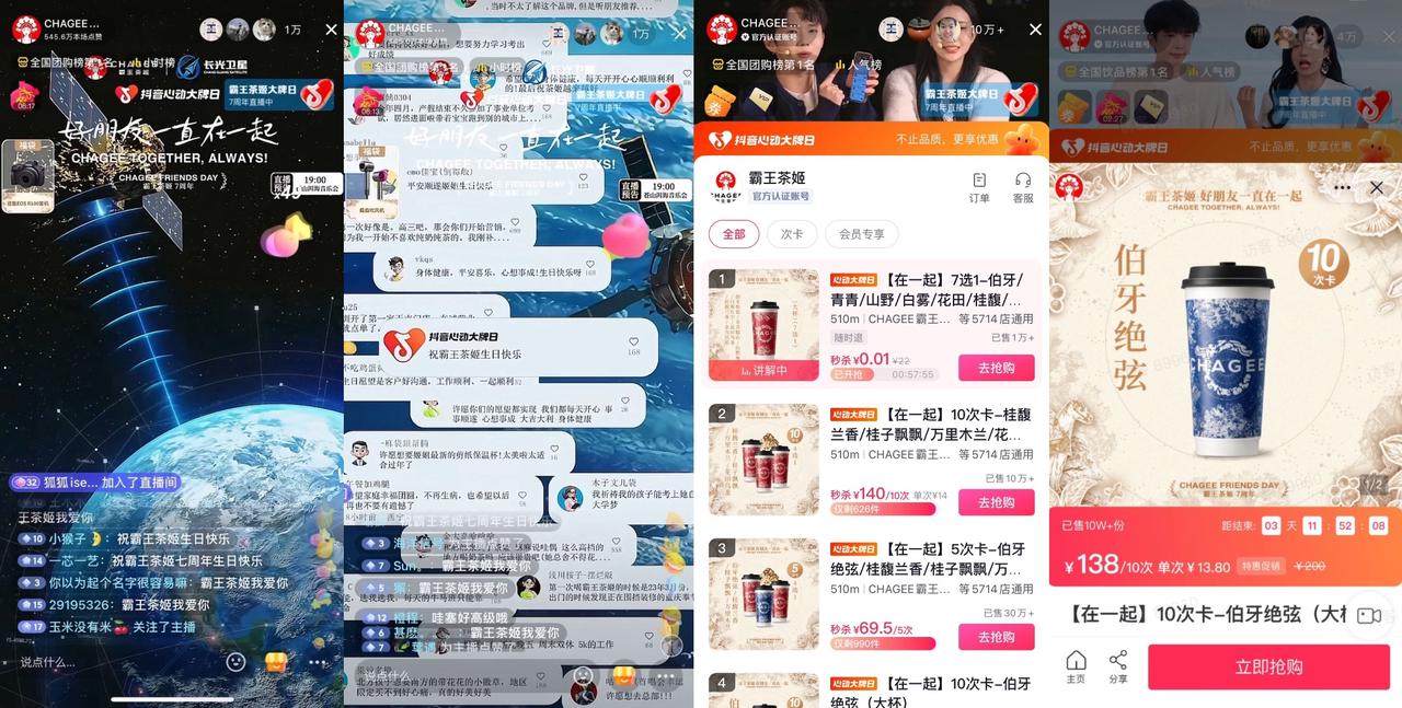 以東方茶會世界友的霸王茶姬,在七周年慶這一重要的里程碑時刻,再度攜手「抖音心動大牌日」?;趯χ两徊栌研木w的細致洞察,收集了一系列來自茶友的動人心愿故事并將其“送上太空”,與粉絲展開近距離的心靈對話,不僅傳達了深厚的品牌價值,更深化了“CHAGEE TOGETHER,ALWAYS!”的品牌理念,彰顯了品牌獨有的人文關(guān)懷魅力。