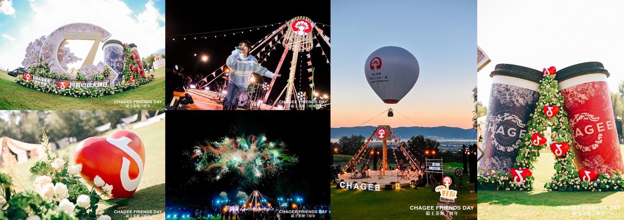 霸王茶姬的寵粉不止落實在優(yōu)惠福利上,對大眾情緒的洞察和重視同樣值得稱道。此次周年慶活動中,品牌巧妙將其精細劃分為線上線下兩大“硬核”階段。在線下于云南大理這一絕美仙境,為茶友們打造了一個釋放日常積攢情緒的夢幻空間。一系列別出心裁的表演環(huán)節(jié)輪番上演:直播用3支好朋友tvc拉開序幕,期間穿插以:CHAGEE FRIENDS DAY現(xiàn)場活動、宇宙心愿訂單、 霓虹花園樂隊現(xiàn)場音樂會、煙花秀表演,將直播現(xiàn)場的氣氛推向了高潮。值得一提的是,抖音心動大牌日還在線下音樂會的核心打卡點處擺放了7個心動音符,以表達對霸王茶姬7周年的祝福與陪伴。