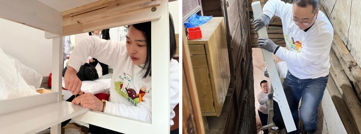 在精心籌備后,3月,我們帶著滿滿愛意的物資準備就緒。我們購置了床、衣柜、書桌、書柜,家居用品等,根據(jù)每個困境家庭的需求,開展全方位的改造工作,為昏暗的房間重新粉刷墻壁,讓屋子明亮起來;整改雜亂危險的電路,保障生活安全;安裝墻板吊頂隔斷,合理規(guī)劃空間,只為給孩子們打造一個舒適的學習與生活環(huán)境。