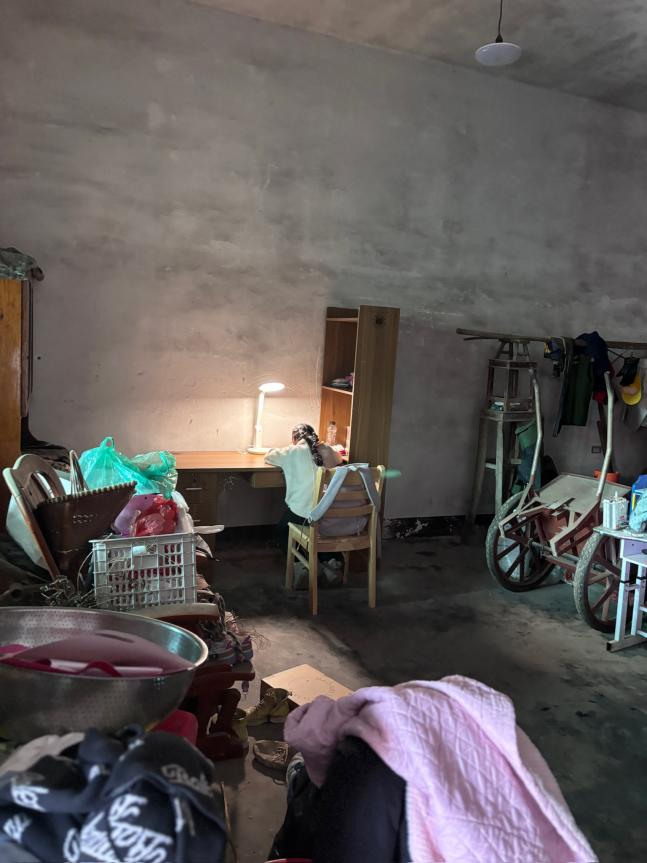 在昏暗的燈光下寫作業(yè)