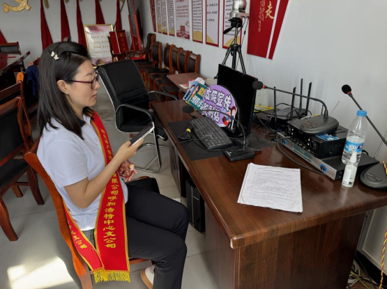(陽光財險工作人員通過鄉(xiāng)村大喇叭宣傳金融知識)