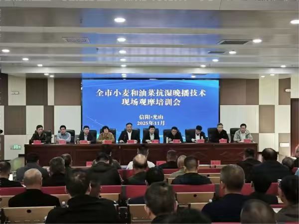 11月5日,由信陽市農(nóng)業(yè)農(nóng)村局聯(lián)合信陽市農(nóng)科院主辦的信陽市小麥和油菜抗?jié)裢聿ゼ夹g(shù)現(xiàn)場觀摩培訓(xùn)會在光山縣順利召開。來自各縣區(qū)農(nóng)業(yè)農(nóng)村局分管負(fù)責(zé)同志、種植業(yè)股負(fù)責(zé)人、縣區(qū)農(nóng)技中心主任以及種植大戶代表近200人參加會議。國家統(tǒng)計局信陽調(diào)查隊(duì)相關(guān)負(fù)責(zé)同志也應(yīng)邀出席。