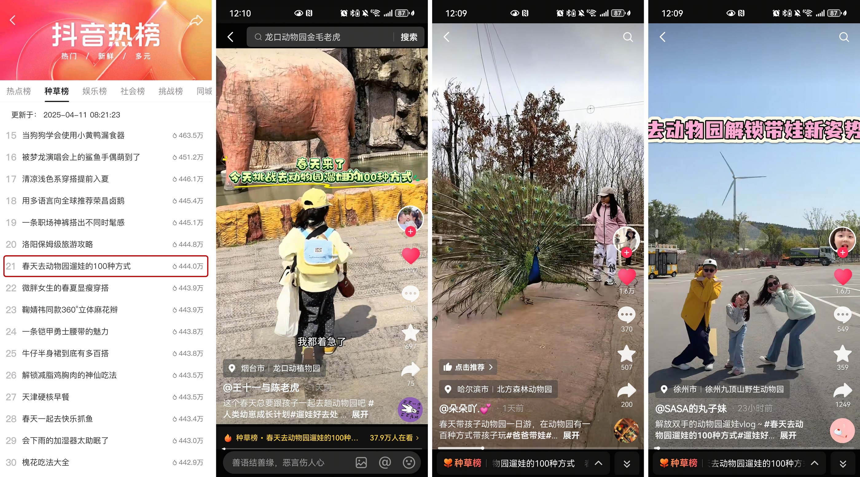 抖音站內(nèi),更是有不少家長(zhǎng)分享著他們與孩子在動(dòng)物園里的溫馨瞬間,話題#春天去動(dòng)物園遛娃的100 種方式 更是持續(xù)升溫。@SASA的丸子妹 記錄了和小羊駝之間純粹而美好的互動(dòng),這即是自然的珍貴饋贈(zèng),也是寶爸寶媽一直在追尋的歡樂(lè)與溫暖;@王十一與陳老虎 分享了婉婉在動(dòng)物園里被小動(dòng)物們的可愛(ài)硬控的一整天,喂長(zhǎng)頸鹿、追小雞,引得爸媽直呼動(dòng)物比他們還會(huì)帶娃;@朵朵吖 記錄了雖然爸爸帶娃很是兵荒馬亂,但小動(dòng)物的活潑可愛(ài)很快就撫平了這些……跟隨著達(dá)人們的鏡頭,萌娃們從繪本走進(jìn)真實(shí)的動(dòng)物世界,時(shí)光在他們的互動(dòng)中變得無(wú)比奇妙,也治愈著我們這些“屏幕前”的大朋友。