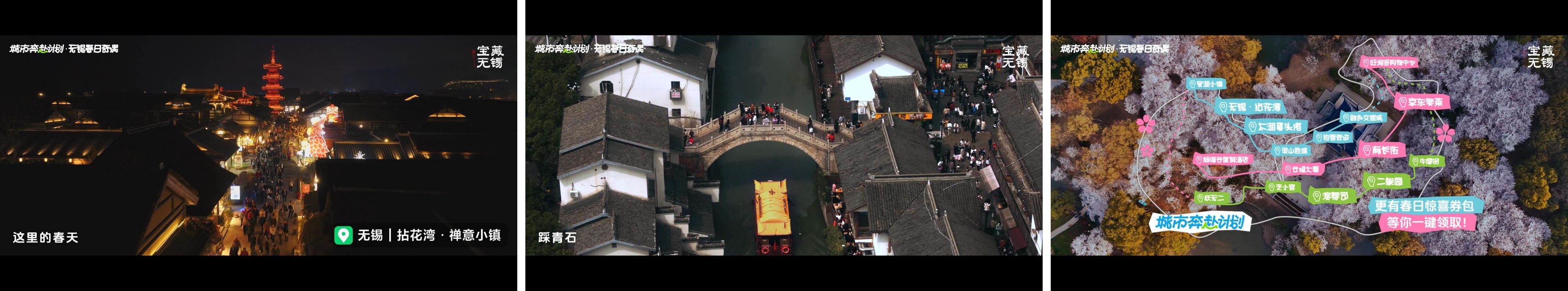 想要更加立體了解無錫的春天,來,一起看看無錫春日宣傳片!抖音生活服務(wù)聯(lián)動無錫政府,共同邀約@中美混血瑪爾娜、@小甜餅pomogisebe、@金三歲 三位達人擔任“春日向?qū)?rdquo;,拍攝城市大片,視頻以三大線路為核心脈絡(luò),用豐富的鏡頭語言展示城市魅力。賞花路線上,黿頭渚的櫻花如粉色云霧繚繞湖畔,拈花灣的夜櫻與無人機秀相得益彰,引得游客紛紛駐足拍照;商圈線路則穿梭于京東奧萊與南長街的古韻巷道,現(xiàn)代商業(yè)與歷史街區(qū)碰撞出獨特的消費場景;而美食線路上,濱壽司的刺身、二泉園老菜館的百年無錫菜,讓“舌尖上的春天”有了具象表達。三條路線覆蓋全城,既是對城市文旅資源的深度梳理,也為游客提供了“一鍵解鎖”無錫春日的實用指南。