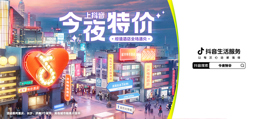 大牌酒店隨訂隨???抖音生活服務聯(lián)合品牌酒店推出「今夜特價」超值通兌