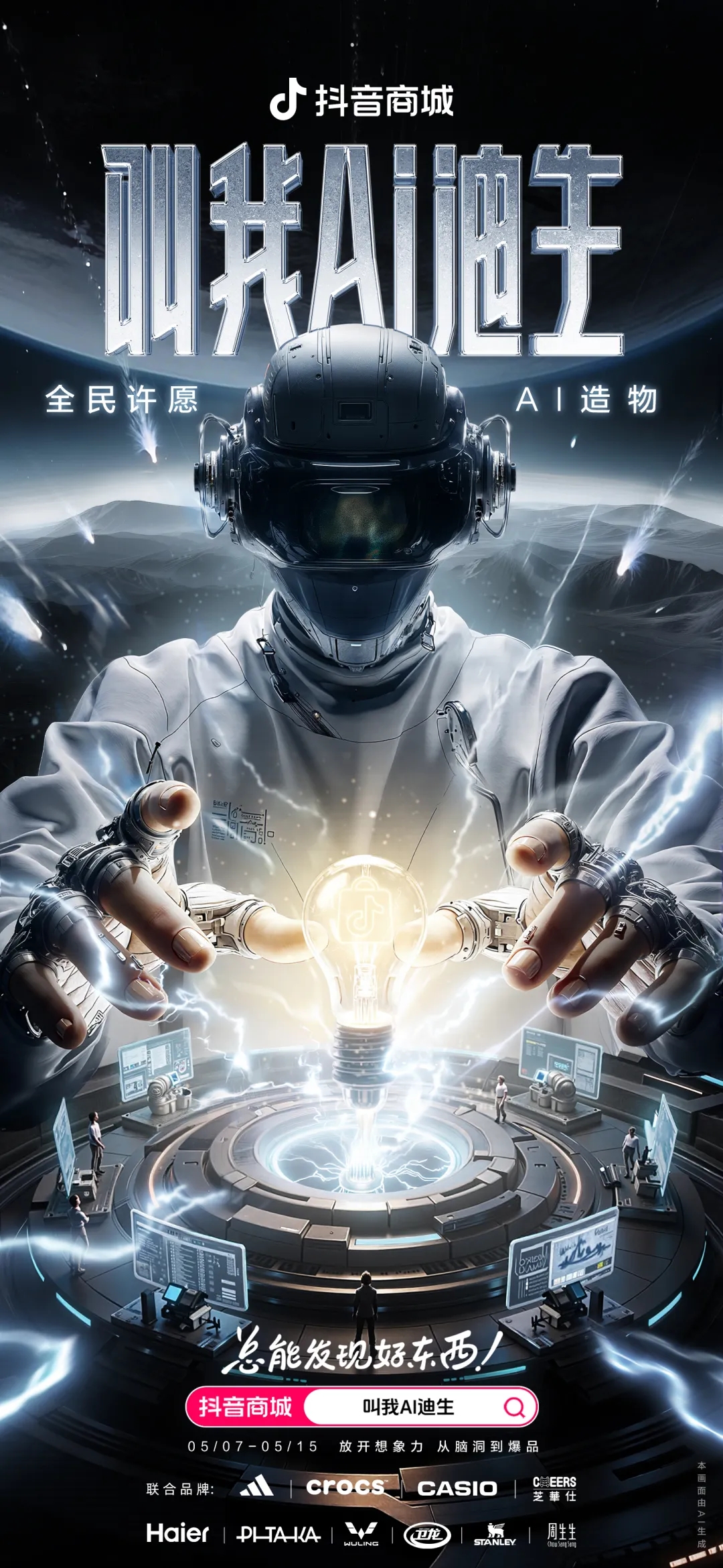 在此背景下,抖音電商發(fā)起的一場(chǎng)名為“叫我AI迪生”的創(chuàng)意活動(dòng),便生動(dòng)詮釋了AI如何賦能這場(chǎng)“供需合拍”的營銷變革。
