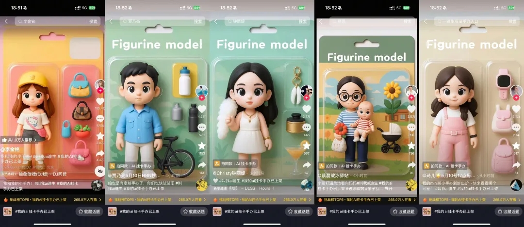 如果說預(yù)熱期是用頭部達(dá)人的示范效應(yīng)和AI的可視化能力點(diǎn)燃了第一把火,那么緊接著上線的「AI掛卡手辦」特效玩法,則是將這把火燒向了更廣泛的用戶群體,真正實(shí)現(xiàn)了“全民AI迪生在線造物”。
