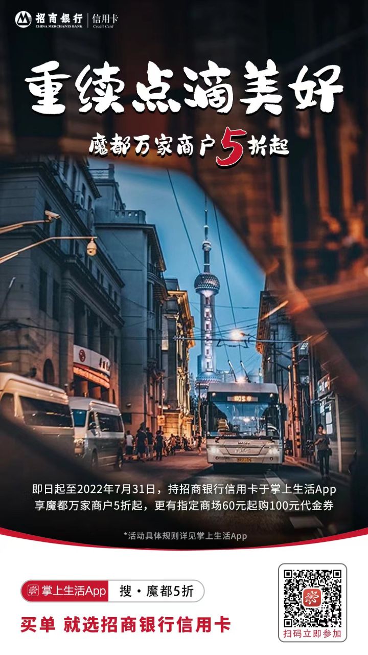隨著上海全面有序復(fù)工復(fù)產(chǎn)復(fù)市,這座城市的點(diǎn)滴美好生活正在重續(xù):路邊咖啡店、日料店、火鍋店重新開放堂食,各大商圈也逐步人潮涌動(dòng),美好的夏日如期而至。政策層面,上海積極支持?jǐn)U大消費(fèi)市場(chǎng)規(guī)模,發(fā)布《上海市加快經(jīng)濟(jì)恢復(fù)和重振行動(dòng)方案》,加速釋放消費(fèi)活力,穩(wěn)定市民消費(fèi)信心。 作為在滬企業(yè),招商銀行信用卡積極響應(yīng)上海市委市政府號(hào)召,短時(shí)間內(nèi)調(diào)動(dòng)多方資源,打造面向上海地區(qū)持卡人的“魔都萬家商戶5折起”活動(dòng)。該活動(dòng)主要覆蓋餐飲及各大商圈,通過一套“組合拳”擴(kuò)內(nèi)需、促消費(fèi),為各類市場(chǎng)主體紓困解難,助力申城美好生活重續(xù)。