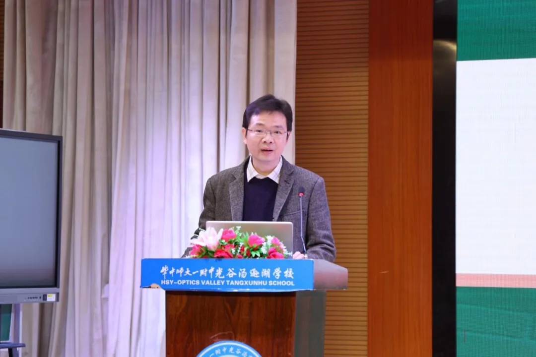 華中師范大學伍倫貢聯(lián)合研究院院長、博士生導師、二級教授、湖北省智能科教研究會會長余新國,華中師大一附中光谷湯遜湖學校副校長胡劼,華中師范大學中國商會研究院研究員張小健先后致辭。