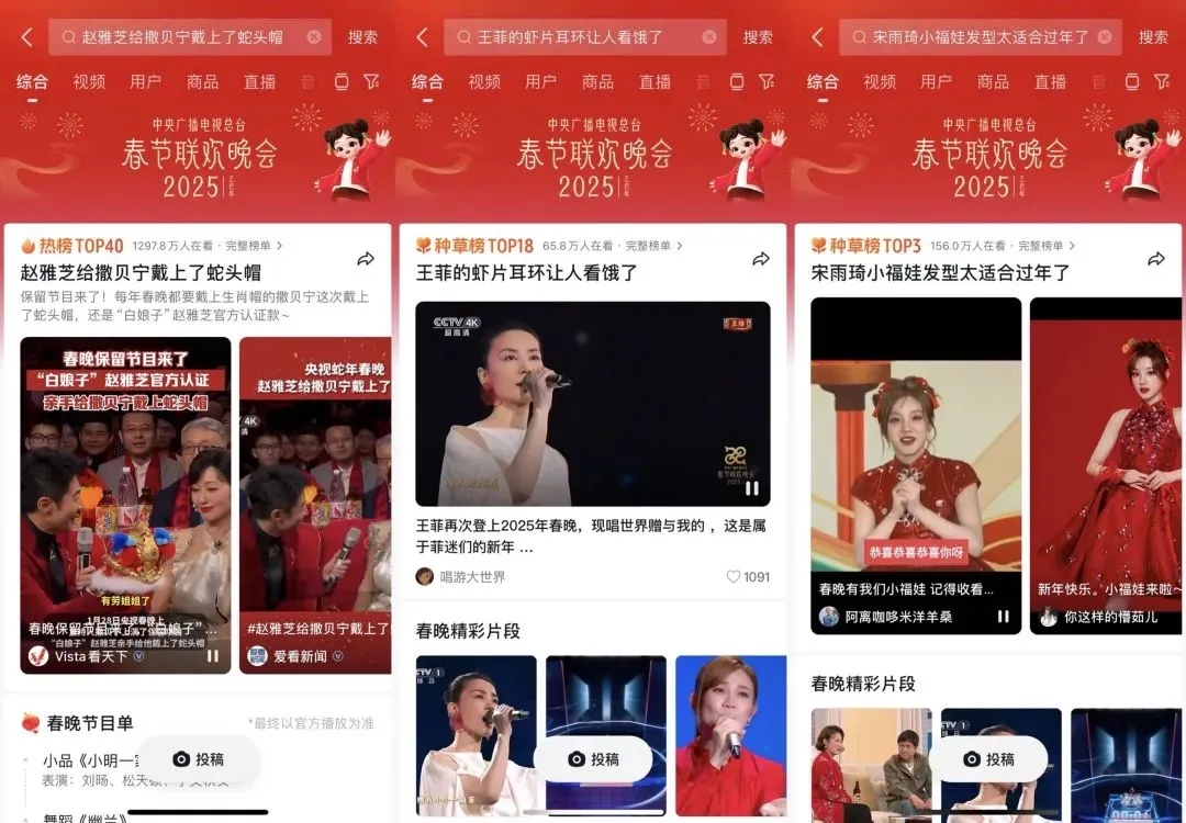 以春晚這一典型的高勢(shì)能營(yíng)銷節(jié)點(diǎn)為例,不僅是國(guó)民級(jí)的文化盛宴,也是品牌商家?guī)ж洰a(chǎn)品、滲透品牌心智的必爭(zhēng)之地,特別是如今用戶邊看晚會(huì),邊搜同款、買同款,已成為消費(fèi)趨勢(shì),甚至有網(wǎng)友評(píng)論:“春晚就是一場(chǎng)大型的種草現(xiàn)場(chǎng)”。