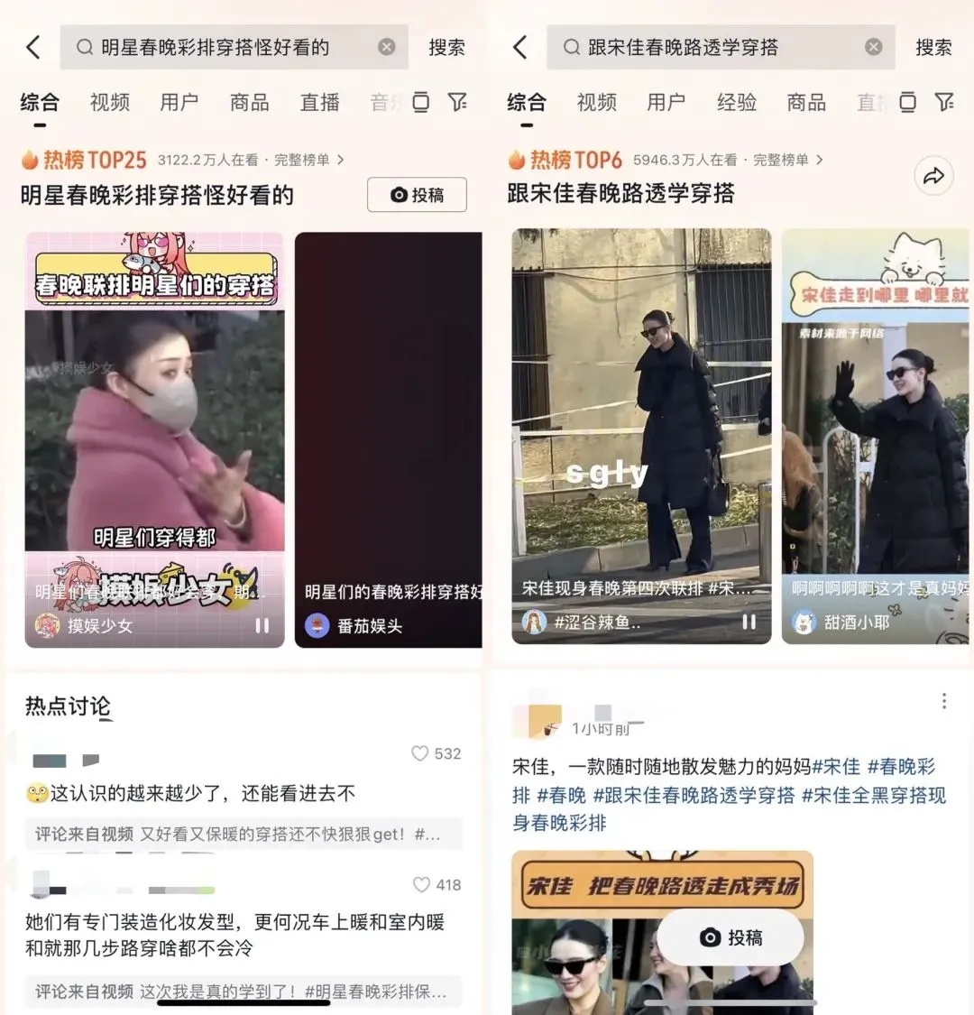 早在春晚前,一批關(guān)于明星春晚彩排的路透穿搭已成為熱點(diǎn),比如因姐感和地母系風(fēng)格出圈的宋佳,在抖音站內(nèi)單個(gè)話題#跟宋佳春晚路透學(xué)穿搭 瀏覽量就接近6000萬,相關(guān)視頻評(píng)論區(qū)下方,網(wǎng)友也紛紛詢問同款穿搭鏈接,與「宋佳同款」相關(guān)的商品銷量漲幅也明顯突出,熱點(diǎn)上線3日相關(guān)搜索PV就增長(zhǎng)108倍,標(biāo)題SEO「宋佳同款」的商品3日搜索成交環(huán)比上漲39%。