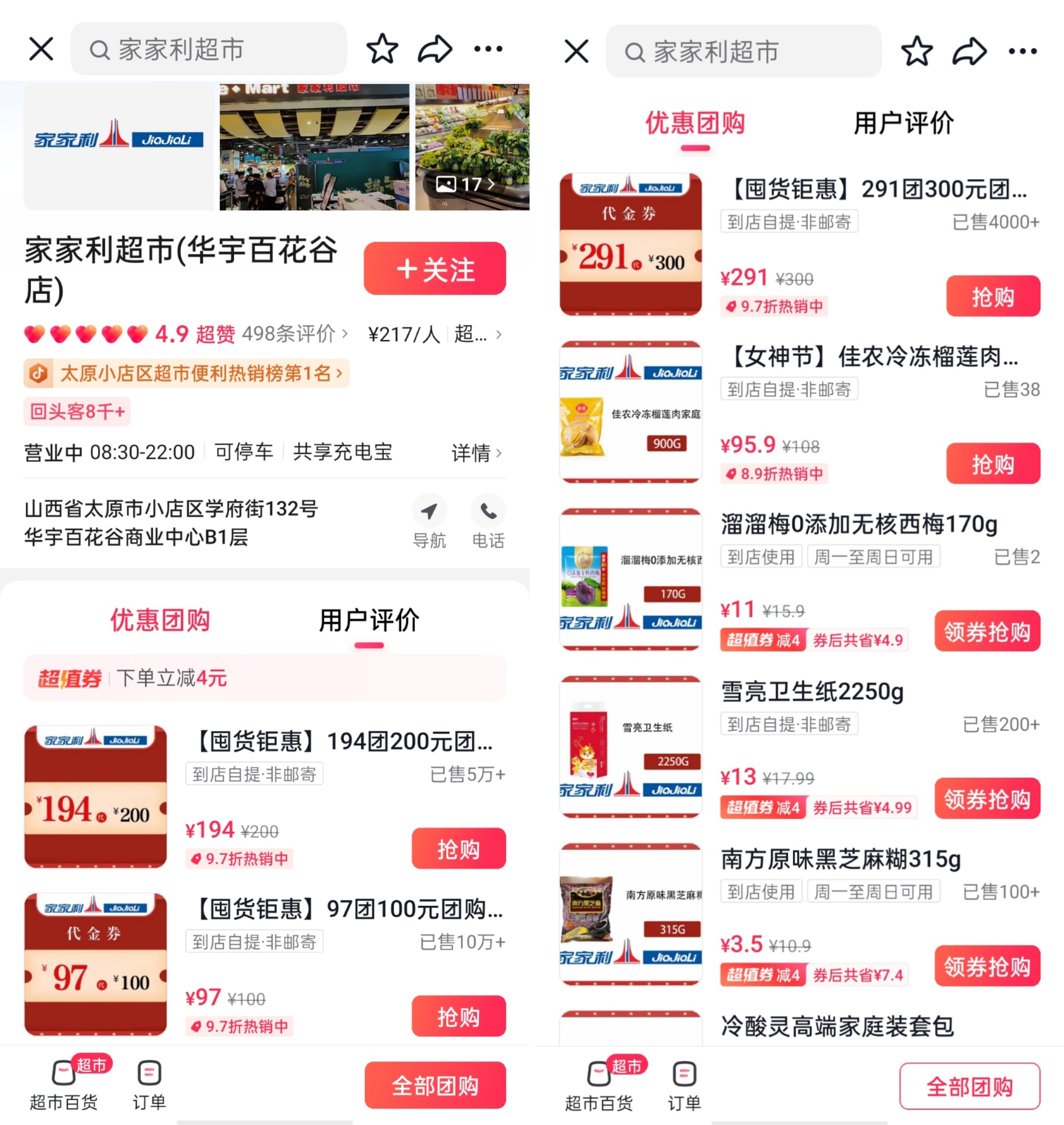 家家利代金券和門店商品