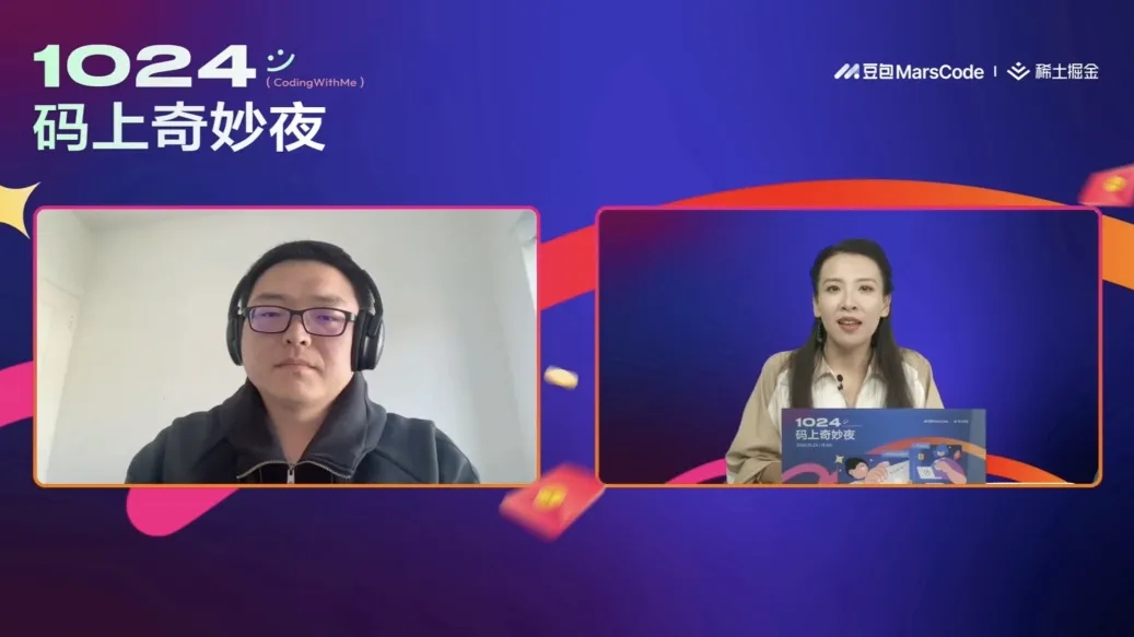 10月24日,豆包MarsCode 與稀土掘金社區(qū)攜手舉辦了“1024碼上奇妙夜”直播活動。本次直播共同探討了 AI 如何在不同階段助力個人成長與職業(yè)發(fā)展,以及 AI 技術(shù)未來的發(fā)展趨勢。同時,在1024這個屬于開發(fā)者的節(jié)日里,豆包MarsCode 也為廣大開發(fā)者帶來一份厚禮,發(fā)布全新的 AI 刷題、AI 練中學(xué)等功能,無論你是新手程序員,還是經(jīng)驗豐富的開發(fā)者,都能在學(xué)習(xí)和開發(fā)過程中體驗到豆包MarsCode 帶來的助力和效率提升。