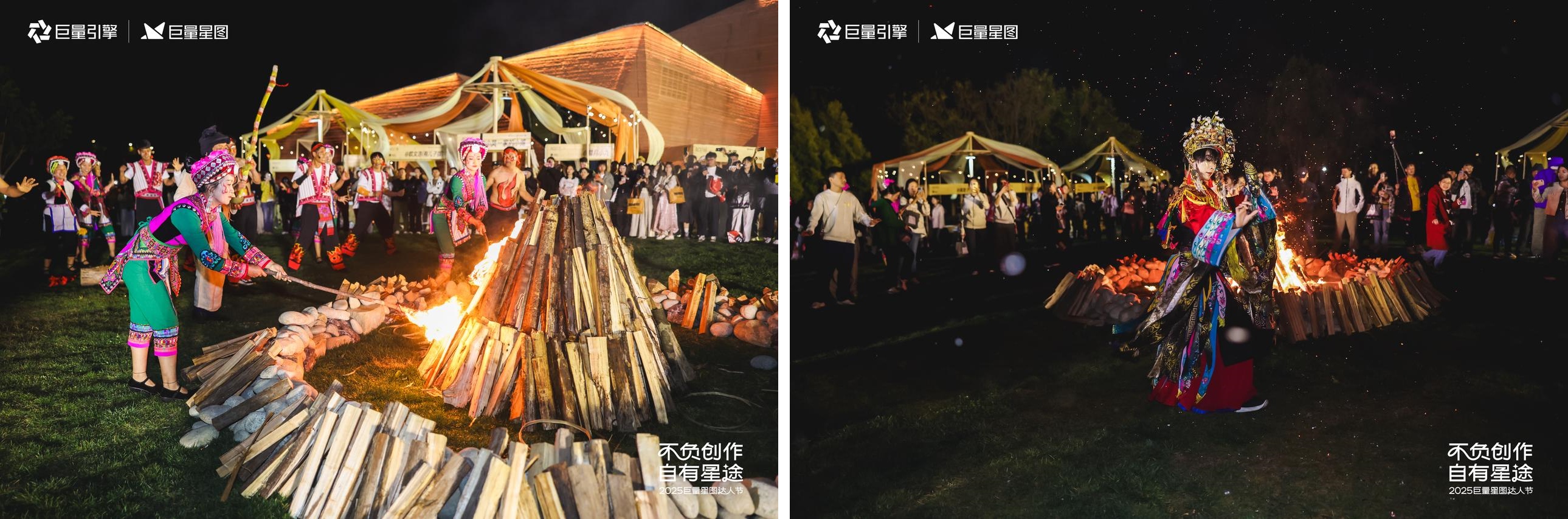 聆聽了達(dá)人們對(duì)好內(nèi)容創(chuàng)作的思考之后,在小鎮(zhèn)夜晚的篝火旁,到場觀眾又近距離感受了畢摩祭火儀式,他們與彌勒彝族原住民、當(dāng)?shù)貥逢?duì)一起歡歌笑語,盡情舞蹈,古老傳統(tǒng)與現(xiàn)代活力交織的奇妙體驗(yàn),為本屆達(dá)人節(jié)增添了濃濃的原生態(tài)氣質(zhì),也為眾人留下了獨(dú)家記憶。