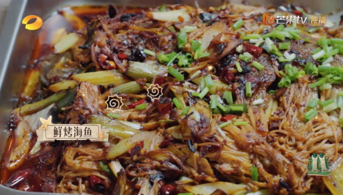在40斤的大魚雙面劃花刀,撒鹽、胡椒,均勻腌制半小時,寬油燒熱下魚煎,翻兩面煎制,盛出后放入烤盤備用。接著,在倒油下豆豉炒香后倒入澆頭,加醬料繼續(xù)翻炒。重點(diǎn)步驟來咯!把炒好的料澆在魚上放入蒸烤一體下柜,220度蒸汽嫩烤20分鐘,最后在出箱時撒上少許蔥花,這道鮮烤烏鲹魚就完美完成啦。看到說過“我不再吃魚”的沙溢老師都在瘋狂夾菜就知道有多美味~