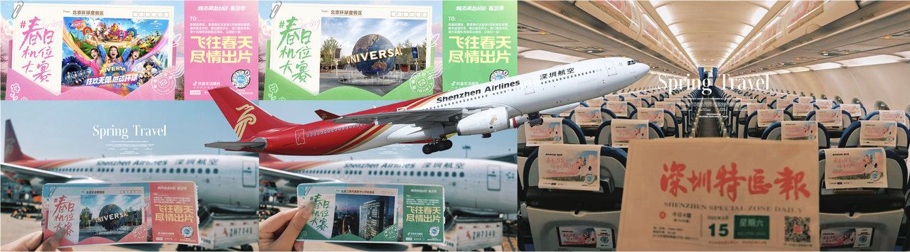 跨界+資源整合,玩轉(zhuǎn)共贏生態(tài) 抖音生活服務(wù)「城市奔赴計(jì)劃·春游季」充分整合平臺(tái)資源,搞了場“上天入地”的跨界聯(lián)動(dòng)。 北京環(huán)球影城+深圳航空+三里屯洲際酒店達(dá)成「春日主題航班」包機(jī)合作,10萬張品牌聯(lián)動(dòng)主題登機(jī)牌變身“春日邀請函”,一場飛行直接串聯(lián)三大品牌與10萬+用戶互動(dòng)。乘客掃碼跳轉(zhuǎn)抖音活動(dòng)會(huì)場,就能解鎖環(huán)球影城同款歡樂、洲際酒店度假套餐,在高空直接種草目的地。